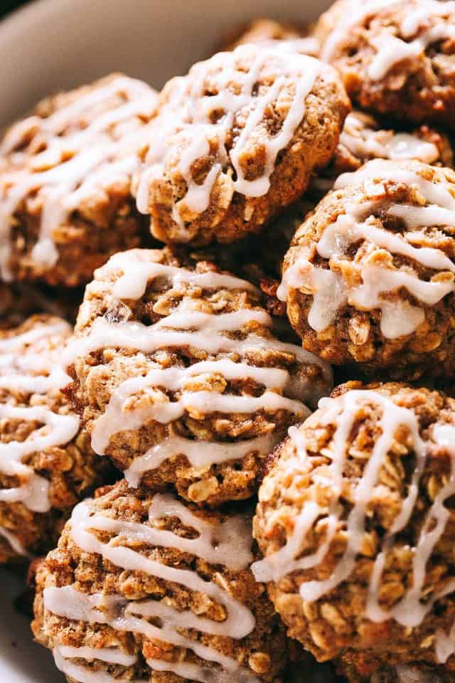 - Verschiedene Glasur. Ich habe von einer Ladung Apfel-Haferflocken-Kekse geträumt, die mit der gesalzenen Karamellglasur von mir garniert sind Rezept für Kürbis-Donuts. Sie können sie auch mit dem Frischkäse-Zuckerguss daraus glasieren Zimtschnecken-Zuckerkekse.