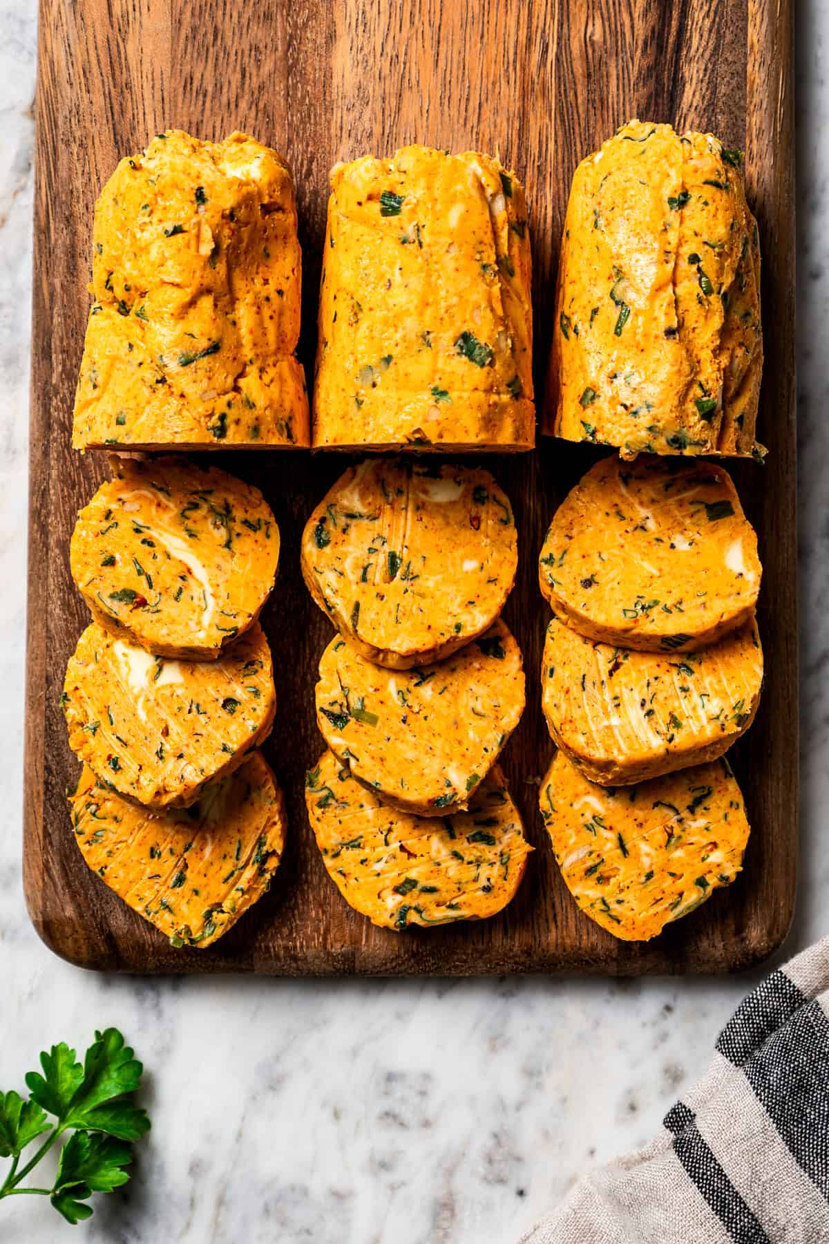• Kühlen. Legen Sie Ihre eingewickelte Butter in den Kühlschrank, um 4 Stunden lang zu kühlen, oder bis sie fest ist. In diesem Schritt können sich auch die Aromen mischen, additionally überspringen Sie es nicht! Wenn Sie bereit sind, schneiden Sie die Cowboy -Butter und verwenden Sie sie, wie Sie möchten.
