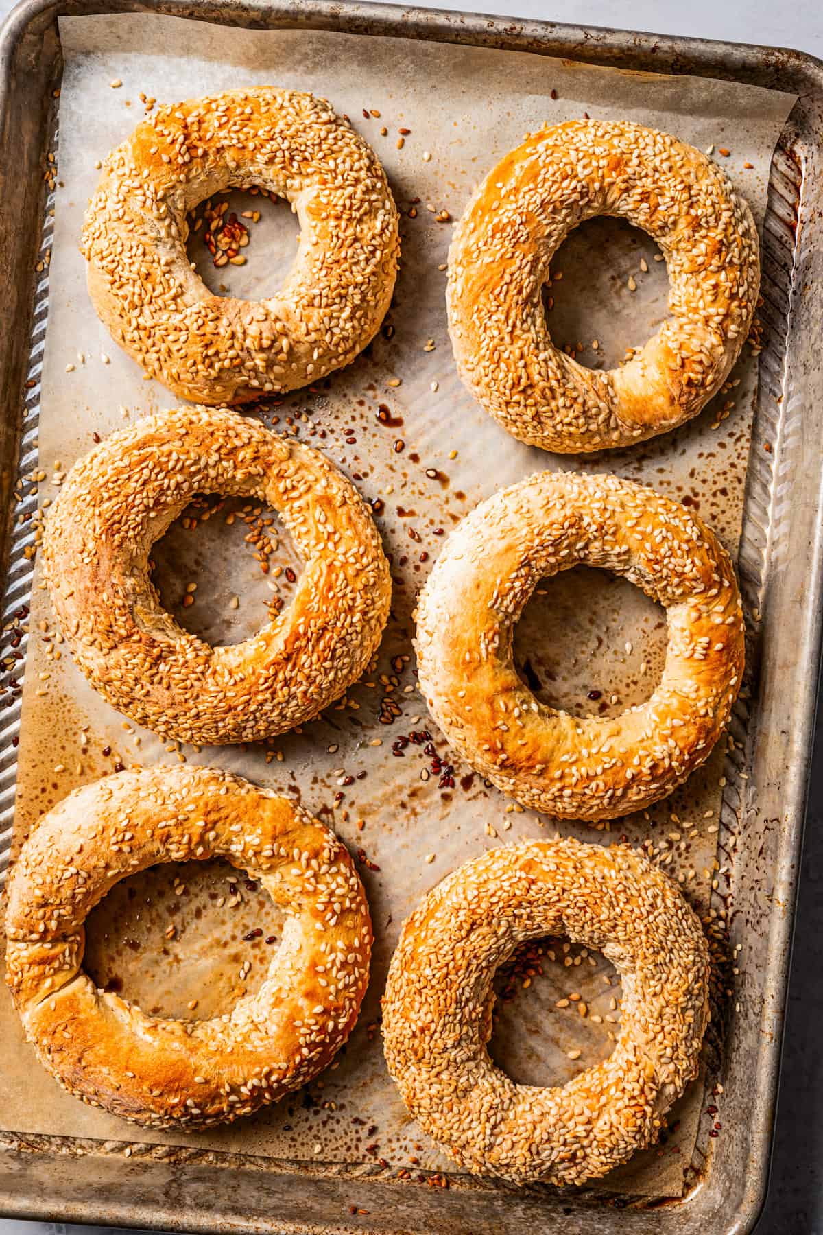 - Backen. Diese Sesam-Bagels müssen 15–20 Minuten in einem 200 °C heißen Ofen gebacken werden. Sobald sie goldbraun sind, nehmen Sie sie heraus und servieren Sie sie!