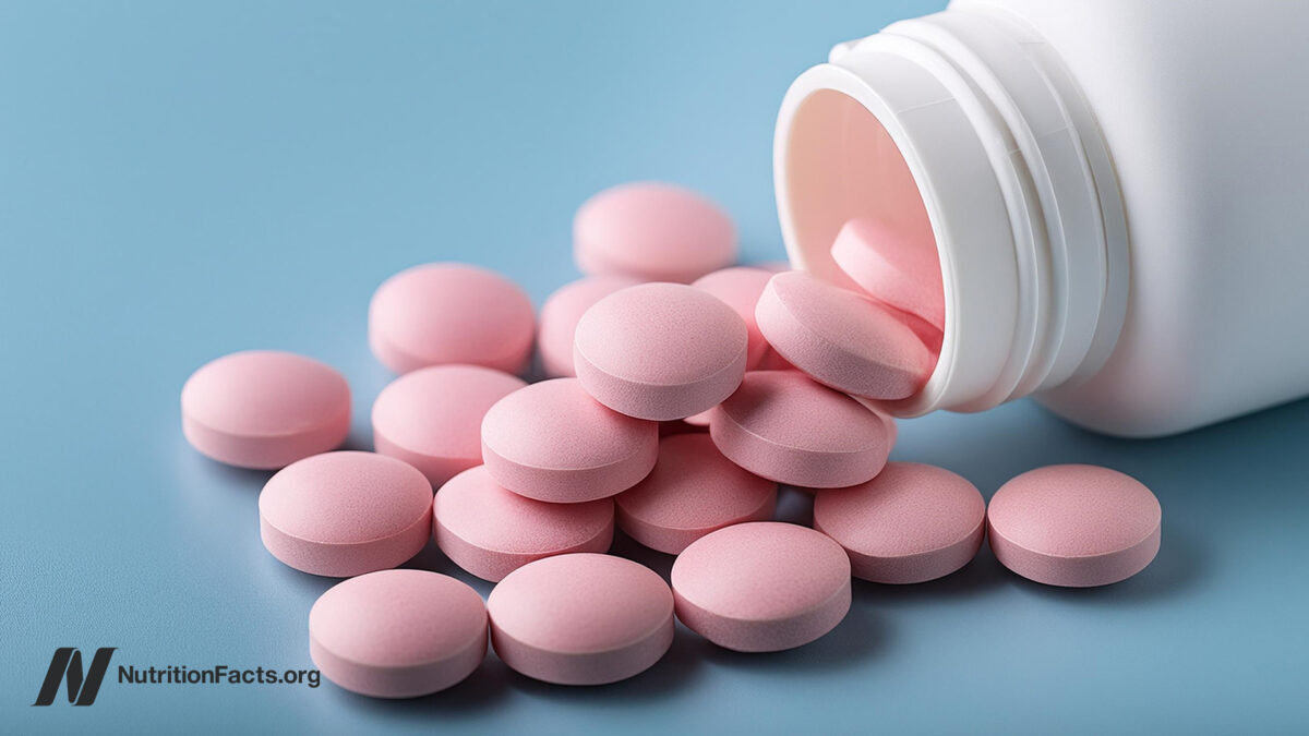 Die Erkenntnisse? „Eine Vitamin-B-Supplementierung hat keinen Einfluss auf die Krebsinzidenz, den krebsbedingten Tod oder die Gesamtmortalität.“ Und dazu gehört auch die besondere Betrachtung von Lungenkrebs, wie unten und bei 5:02 in meinem zu sehen ist Video. Wenn überhaupt, können Vitamin-B-Ergänzungen sogar das Risiko für die gefährlichste Kind von Hautkrebs senken.