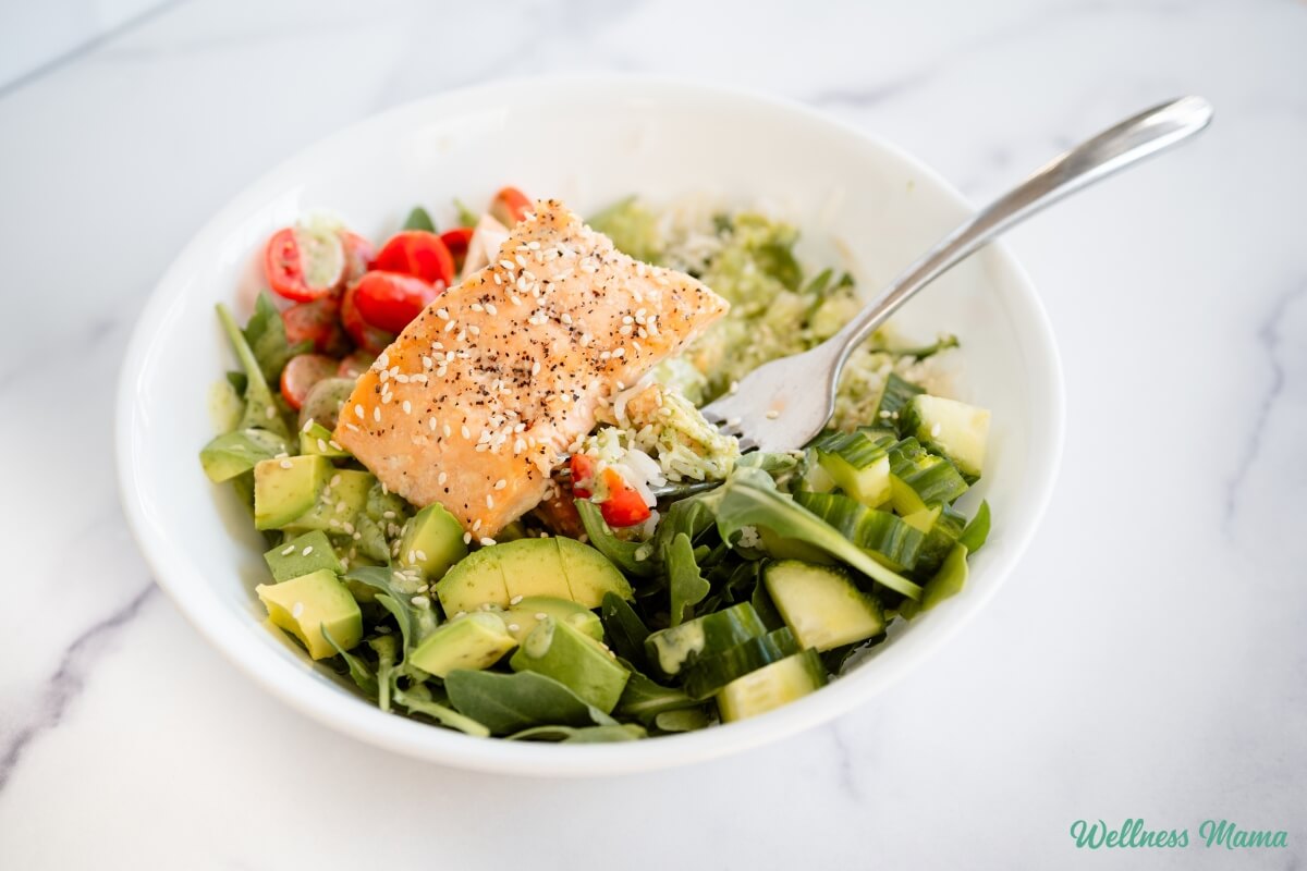 Diese haben bereits so viel Geschmack, aber Sie können gerne noch weitere Garnituren hinzufügen, um mehr Nährstoffe und Geschmack zu erhalten. Für eine würzige Lachsschüssel gebe ich gerne etwas Siracha zum Dressing. Hier sind noch ein paar weitere Ideen.