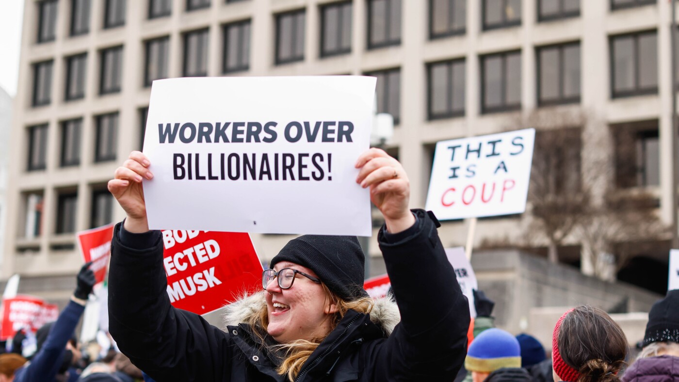 Ein Protest im US -Arbeitsministerium am 5. Februar (Foto von Kena Betancur/ViewPress)