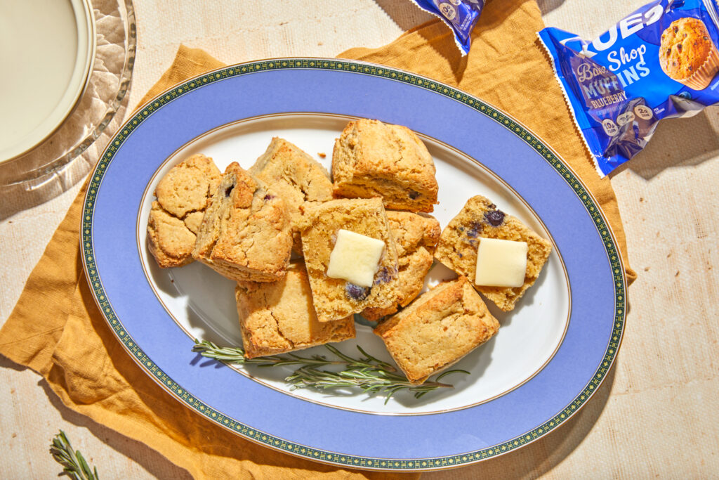 Betrügen Sie langweilige Desserts mit zweifelhaften Blaubeer-Muffin-Keksen. Sehen. Spielt es wirklich eine Rolle, ob es sich um einen Muffin oder einen Keks handelt? Nein. Nicht, wenn Sie der ultimative Thanksgiving-Cheat-Code sind! Zerkrümeln Sie ein paar Blaubeermuffins von Quest Bake Store, vermischen Sie sie mit Mandelmehl und ein paar einfachen Zutaten und fertig: Kekse, die zu gleichen Teilen flockig und butterartig sind und vor festlicher Weihnachtsstimmung sprühen. Feiern wir dieses Rezept als das, was es ist: ein leckerer Leckerbissen, der Ihre Proteinziele Bissen für Bissen übertrifft.
