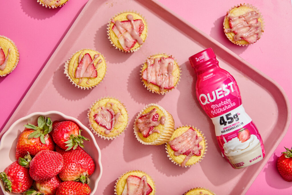 Betrüger auf mittelmäßige Muffins mit questifizierter Erdbeermilchshake -Protein -Muffins. Kennen Sie den Muffin -Mann? Ja, vergiss ihn. Er ist raus. Wir sind dabei. Und wir haben Protein. Einführung von questifizierten Erdbeermilchshake -Muffins – dem weichen, flauschigen und lächerlich köstlichen Hack, um Ihren Muffin Mojo zurückzubringen. Gemacht mit Quest -Erdbeer -Proteinmilchshake Und mit echten Erdbeeren gekrönt, ist dieses Rezept hier, um das Drehbuch zum Frühstück zu drehen. Entschuldigung, Muffin Man – Ihre Dienste sind nicht mehr erforderlich.