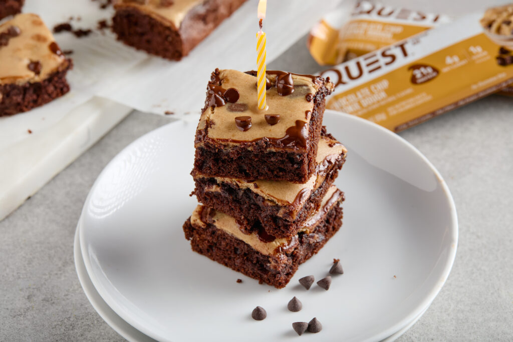 BETRÜGEN SIE EINFACHE BROWNIES MIT FRAGENDEN COOKIE-TEIG-PROTEIN-BROWNIES. Brownies. Sie tauchen bei Kuchenverkäufen, unangenehmen Potlucks im Büro und manchmal um 2 Uhr morgens in Ihrem Gefrierschrank auf. Aber was wäre, wenn Brownies mehr sein könnten als nur weiche, schokoladige Köstlichkeiten, eingewickelt in Keksteig? Was wäre, wenn sie Ihnen auch dabei helfen könnten, Ihre Proteinziele zu erreichen? Lernen Sie Questified Cookie Dough Protein Brownies kennen: das Dessert-Äquivalent zum Sieg im Leben. Ganz gleich, ob Sie Ihre nächste Spendenaktion ankurbeln, abschalten oder vernichten, dieses Rezept ist Ihr Erfolgsrezept.