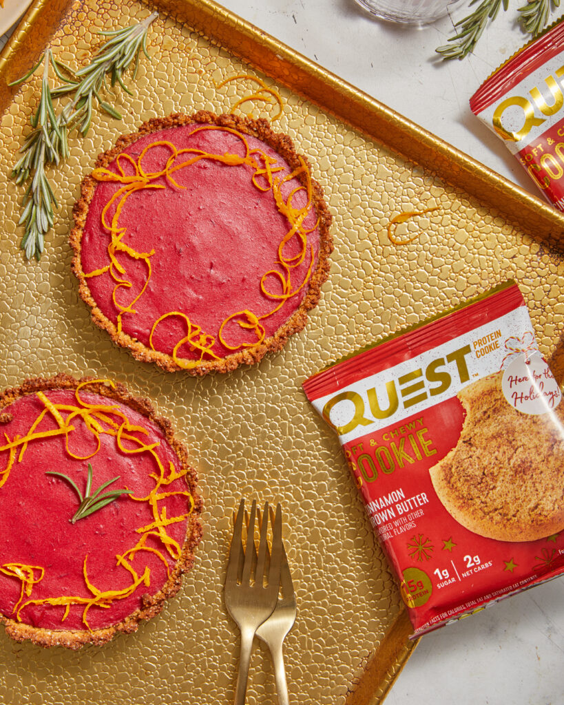 Betrügen Sie langweilige Desserts mit zweifelhaft gebräunten Cranberry-Orangen-Törtchen mit Butter. Treten Sie beiseite, trockene und triste Thanksgiving-Desserts. Dieses Rezept soll Ihren Tisch in ein Fest voller würziger, butterartiger Köstlichkeiten verwandeln. Denken Sie an eine Kekskruste mit brauner Zimtbutter, gefüllt mit einer pikanten Cranberry-Orangen-Füllung, die vor herbstlicher Farbe nur so strotzt. Und es deckt auch Ihre Proteinziele ab. Seien Sie nicht überrascht, wenn Sie heimlich ein Stück davon ergattern, bevor die Gäste überhaupt eintreffen.
