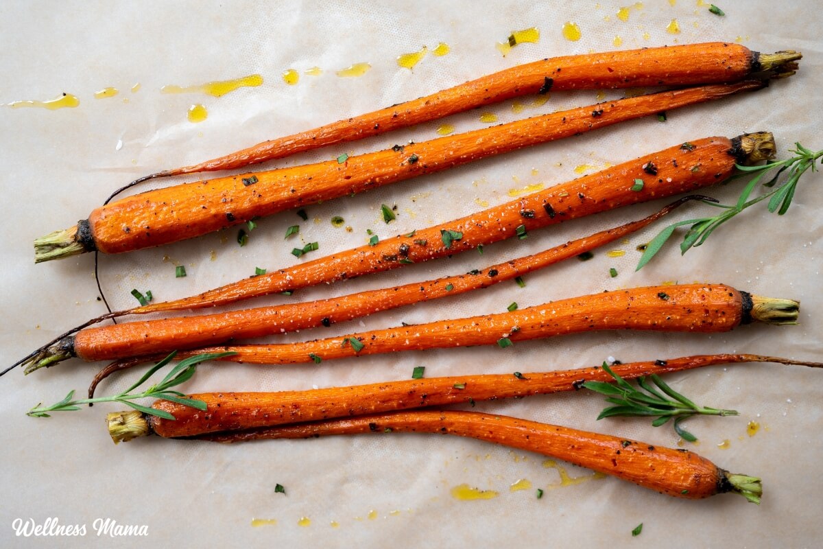 Einige Rezepte erfordern die Zugabe von raffiniertem oder braunem Zucker, aber das ist nicht wirklich notwendig. Durch das Rösten karamellisiert der Zucker im Gemüse und ergibt eine aromatische Beilage. Ich verwende gerne Ahornsirup, um etwas mehr Geschmack zu verleihen und die natürliche Süße der Karotten zu ergänzen. Sie könnten stattdessen sogar einen Esslöffel Honig für eine Model mit gerösteten Karotten in Honig verwenden.