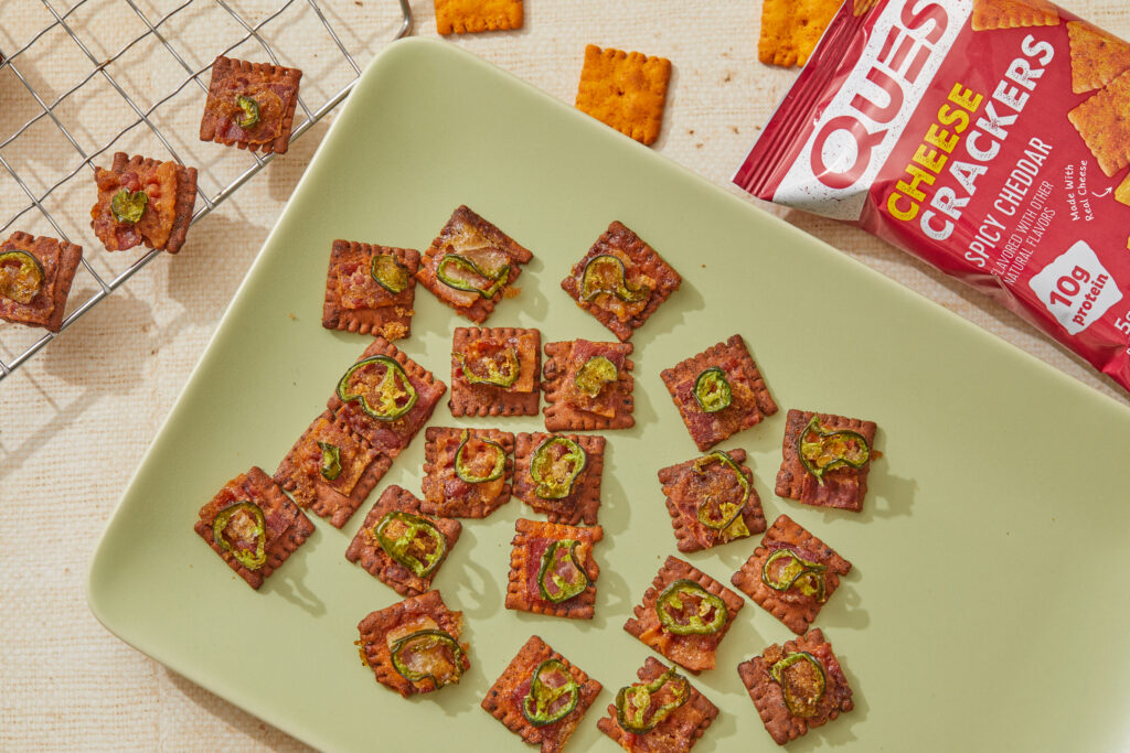 Schummeln Sie bei gewöhnlichen Snacks mit Questified Spicy Candied Bacon Cheese Crackers. Möchten Sie Ihren Lieblingscrackern eine pikante Be aware verleihen? Stellen Sie sich Folgendes vor: Quest Crackers Käse würzig garniert mit knusprigem Speck, einer Prise zuckerfreiem braunen Zucker und einer Scheibe Jalapeño für den perfekten süßen und würzigen Kick. Tremendous einfach zuzubereiten. Noch einfacher zu genießen. Einfach in den Ofen schieben und im Handumdrehen haben Sie einen würzigen Snack-Hack, der Ihre Geschmacksknospen und Ihre Freunde begeistert.