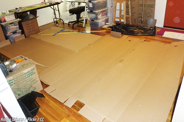 Eine weitere Möglichkeit, Ihren Boden vor Kratzern zu schützen, besteht darin, Pappplatten zu verwenden und diese auf dem Boden auszulegen.