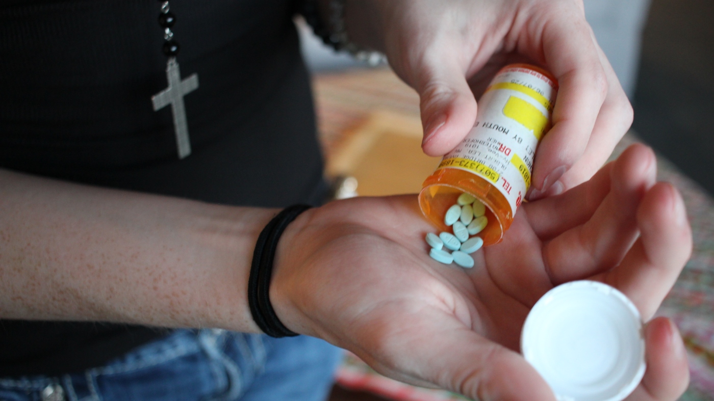 Veronica, 17, aus Des Moines, Iowa, mit ihren Östrogenpillen. Eine neue Studie zeigt, dass Kinder, die Pubertätsblocker oder Hormone im Rahmen einer geschlechtsspezifischen Betreuung einnehmen, nur sehr wenig bereuen.