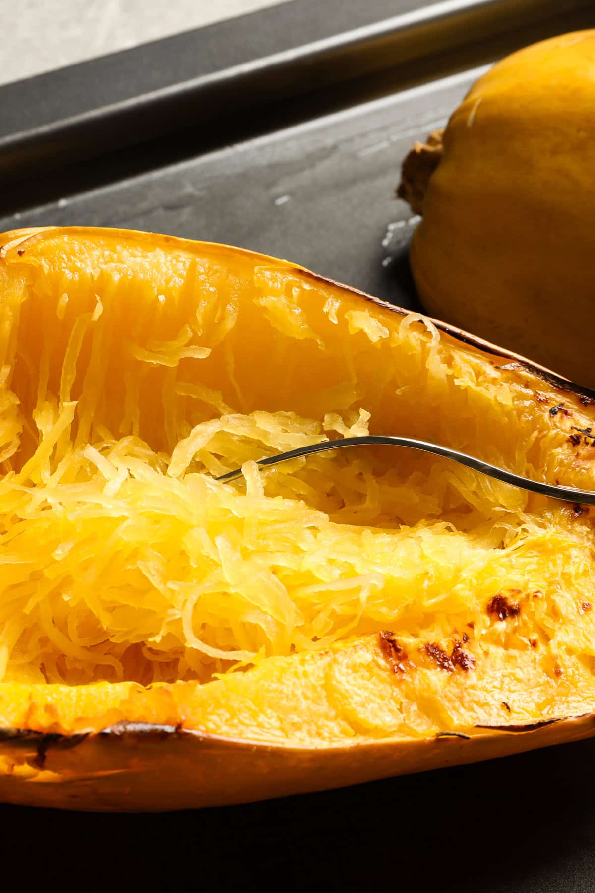Detaillierte Anweisungen zum Rösten von Spaghettikürbis finden Sie in meinem cremiger Spaghettikürbis Rezept.