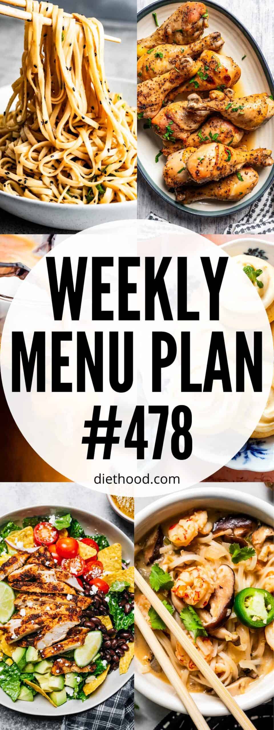 Wöchentlicher Menüplan 478. Pinterest-Bild mit Collage aus sechs Bildern.