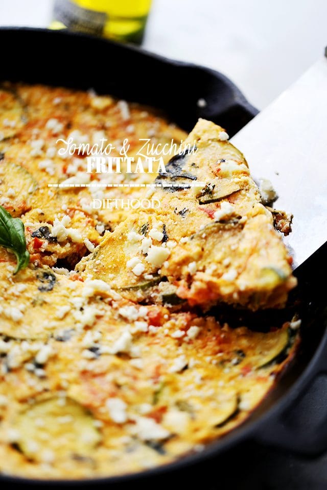Diese füllende Zucchini Frittata ist mit Garten Zucchini, reifen Tomaten, frischem Basilikum und Feta beladen. Passen Sie dieses einfache Rezept mit Ihren Lieblingszutaten an und machen Sie es zum Frühstück, Brunch oder sogar Abendessen!